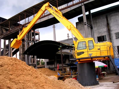 該固定式抓料機是生物發(fā)電、造紙、人造板等固定作業(yè)場所進行喂料、裝卸的最佳設備。