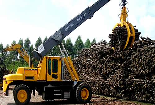 QLYS15DY吊運(yùn)機(jī)來回穿梭在木材儲運(yùn)場地