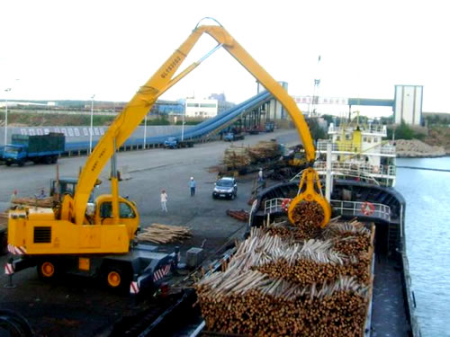 加長二節(jié)臂“雙動力”抓木機奮戰(zhàn)碼頭卸船一線