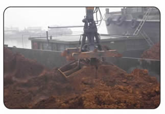 紅土鎳礦油電雙驅(qū)雙動(dòng)力抓料機(jī)在港口碼頭啟用